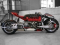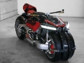 The LM847 has a dual-wheel hub center steering setup up front and uses the rear end of the Ducati 1299 Panigale. The bike also uses a custom suspension setup from TFX and the levers and the mirrors are Rizoma.