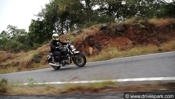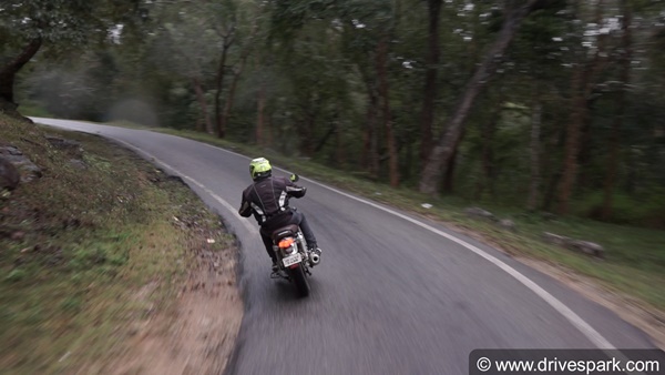 The lightweight of the motorcycle is beneficial even in city limits. The Honda H'ness CB 350 is easily manoeuvrable and can filter through traffic conditions rather easily. The motorcycle also handles sharp turns relatively well, thanks to its compact 800mm width. The motorcycle comes shod of MRF rubber, giving good levels of grip in both wet and dry running conditions.