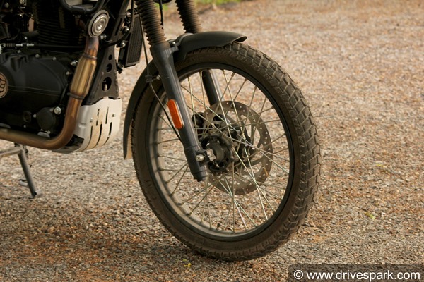 The motorcycle also continues to ride on a set of 21-inch wheels at the front and 17-inch wheels at the rear. It comes with 90/90 and 120/90 tyres profiles. The Himalayan features tube tyres with spoked rims, aiding its off-roading capabilities.