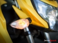 Two of the major design aspects that get a person to look twice at the RTR are the front headlight and the long fins on the side of the fuel tank. The fins on the tank were a noticeable feature on the previous models too, but with a larger tank, they really stand out. Another eye catching design element is the exhaust, which sports the catalytic converter on the side. The Apache RTR 200 also features a very unique Daytime Running Light (DRL) design that look like fangs.