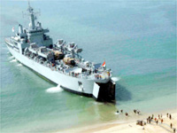 The ship can carry 10 Main Battle Tanks, 11 Combat Trucks and 500 Troops and has a considerable range and endurance at sea. Besides undertaking amphibious operations, the ship is a potent assault platform capable of operating both Seaking 42C and the indigenous Dhruv helicopters. It is fitted with two indigenous WM 18A Rocket Launchers to support successful amphibious operations.