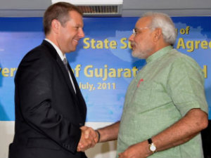 The Gujarat state government lead by Narendra modi signed an agreement with Ford India according to which the American carmaker will be provided 460 acres of land in Sanand. Mr. Maheshwar Sahu, Principal Secretary (Industries), and Mr Michael Boneham, Ford India"s President and Managing Director signed the MOU in the presence of Mr Narendra Modi and Mr Joe Hinrichs, President, Ford Asia-Pacific and Africa.