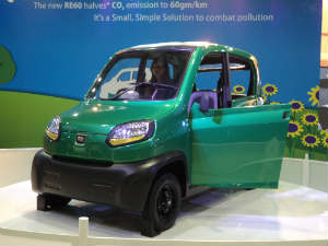 The Bajaj RE 60 was unveiled just a day before the 2012 Delhi Auto Expo. The Re 60 was displayed at the auto show where senior executives from Renault and Nissan also saw it. It was widely believed that Bajaj Auto would unveil a low cost small car that could compete with the Tata Nano. Renault and Nissan had signed an agreement to market Bajaj's low cost car.