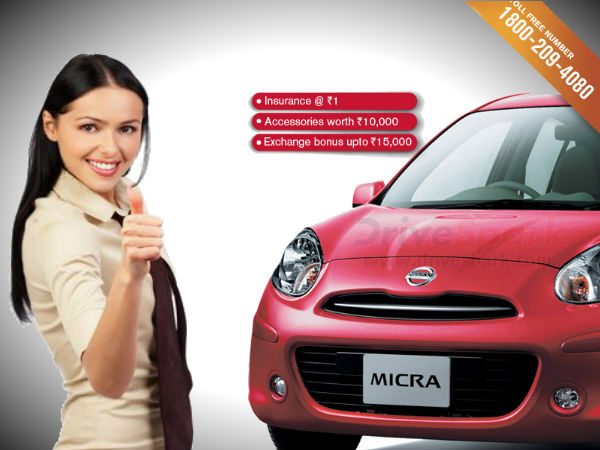 Japanese carmaker Nissan is offering an incredible offer on its entry level hatchback Micra. Buyers of the Nissan Micra can now get Insurance and accessories worth Rs.10,000 by paying just one rupee. Nissan Micra buyers can also get an additional cash benefit of Rs,15,000 if they are buying it on an exchange scheme.