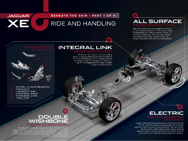 Mike Cross, Chief Engineer of Vehicle Integrity, explains, "Jaguars have always been renowned for a balance of precise handling and a high-quality ride. The XE is the culmination of everything the company has learned over the years."