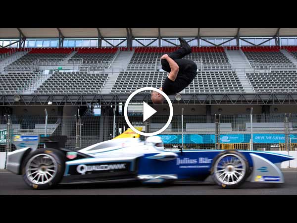 Damien Walters Backflips Over Formula E Race Car At 97 Km/h