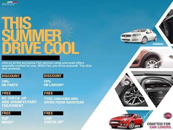 Exclusive sales offers will also be available during the Fiat Drive Cool Camp. Customers can avail of a maximum benefits worth up to Rs. 35,000. The Italian-based automobile manufacturer will also offer free insurance on certain models till April 15, 2016.
