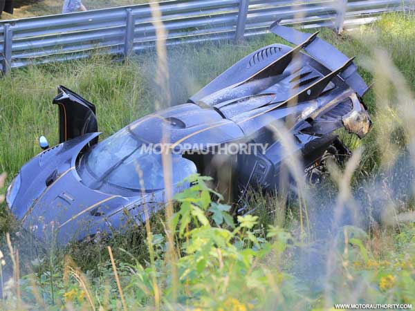 According to the carmaker, the One:1 experienced front axle brake lock up while travelling at approximately 170km/h, before hitting the fence at 110km/h. The impact launched the car into the air for about 22 meters and the car landed on its left rear wheel.