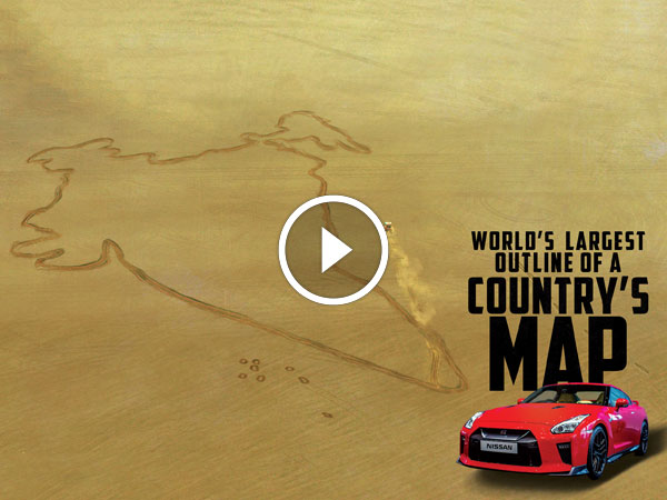 The Nissan GT-R carved out the world's largest-ever outline of a country map on the dried out lake bed of the Sambhar Lake in Rajasthan. The GT-R was driven by professional rally driver Rahul Kanthraj as it attempted the record feat.