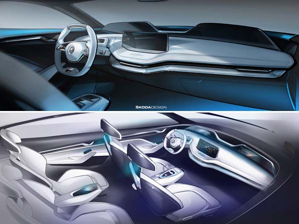 Czech carmaker Skoda has released sketches revealing the interiors of its upcoming Vision E concept car. The Skoda Vision E Concept will debut at the Shanghai Motor Show later this month.
