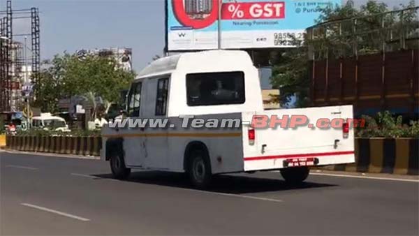 Gone are the curves that are usually seen on the Force Traveller. The test-mule has weird looking, flat body panels. The Force Traveller has its engine mounted inside the cabin and protrudes only slightly in front of the cabin, allowing it to have a small bonnet.