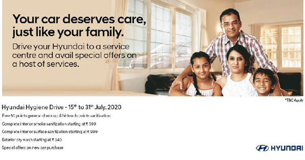 Hyundai Motor India Ltd. has announced the commencement of its Nationwide Hygiene Drive at all Hyundai workshops across the country. This drive has been provided to promote complete sanitization of vehicles during the outgoing COVID-19 pandemic. Customers can avail these special offers and incentives on the sanitization for their vehicles from July 15 till July 31, 2020.