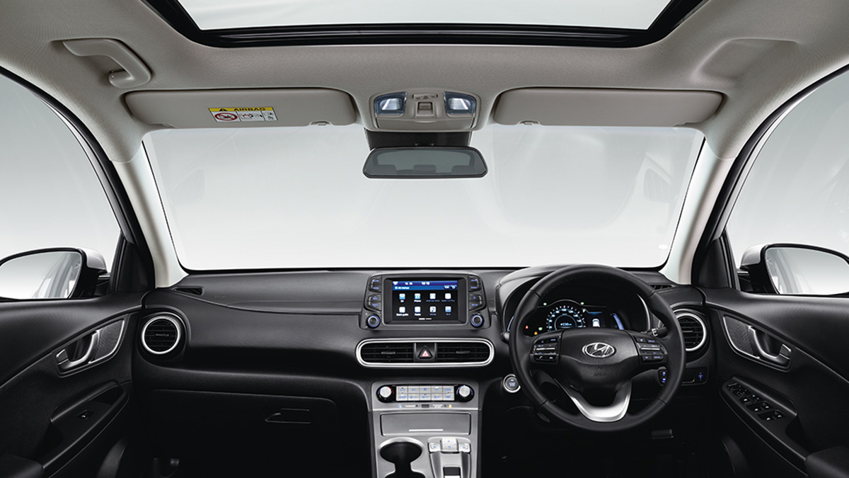 The Hyundai Kona Electric is available with two battery pack options: 44.4 kWh and 64.4 kWh. These battery packs offer a range of up to 490 km on a single charge. The vehicle includes features such as a 12.3-inch dual-screen setup, advanced driver-assistance systems (ADAS), LED lighting, and an electronic gear selector.