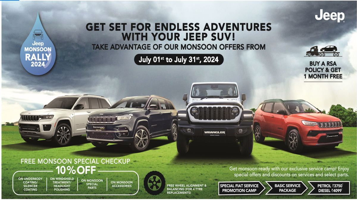 The "Jeep Monsoon Rally 2024" campaign is designed to prepare Jeep SUVs for any adventure, regardless of weather conditions. This service drive includes various exclusive monsoon-related services and offers, allowing Jeep owners to continue enjoying their vehicles' off-road capabilities.