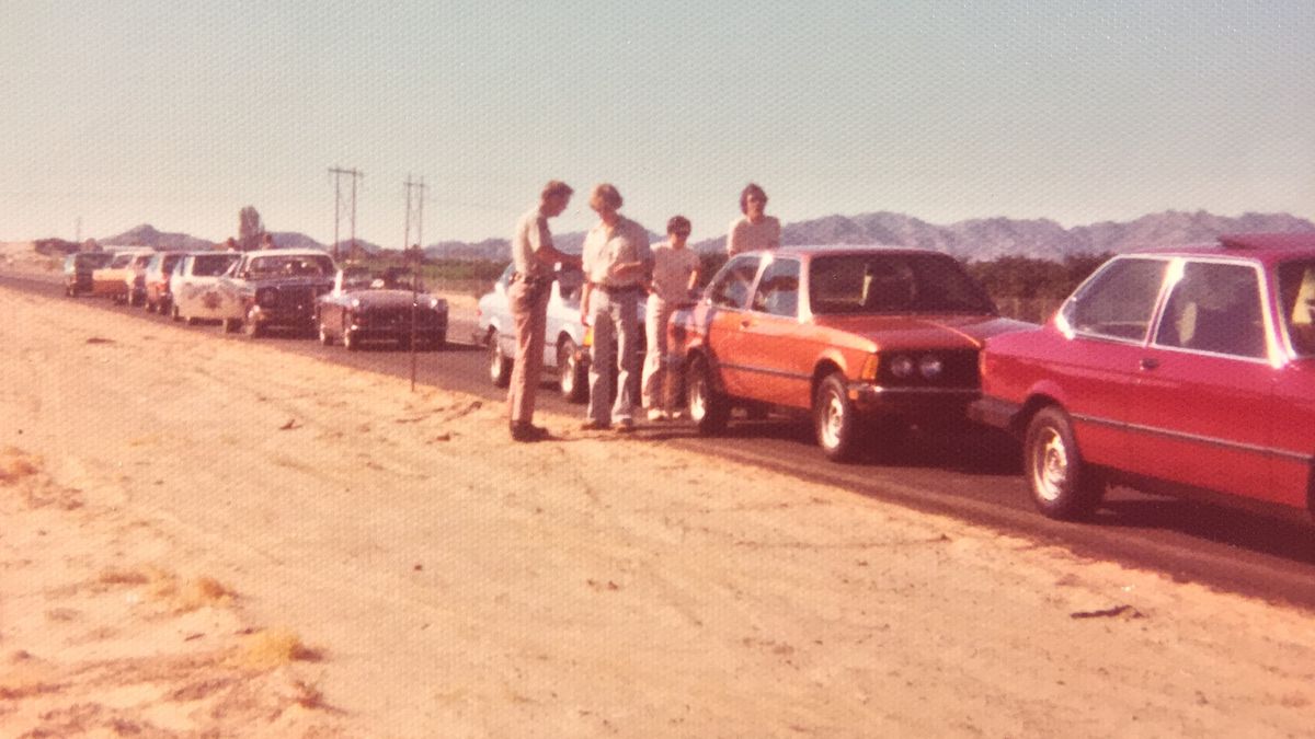 In November 1976, twelve new 3 Series vehicles embarked on a journey from Los Angeles with ACA members at the wheel. Many brought along spouses or friends as passengers. Their spirited driving caught the attention of California Highway Patrol officers who issued speeding tickets to several drivers near Thermal.