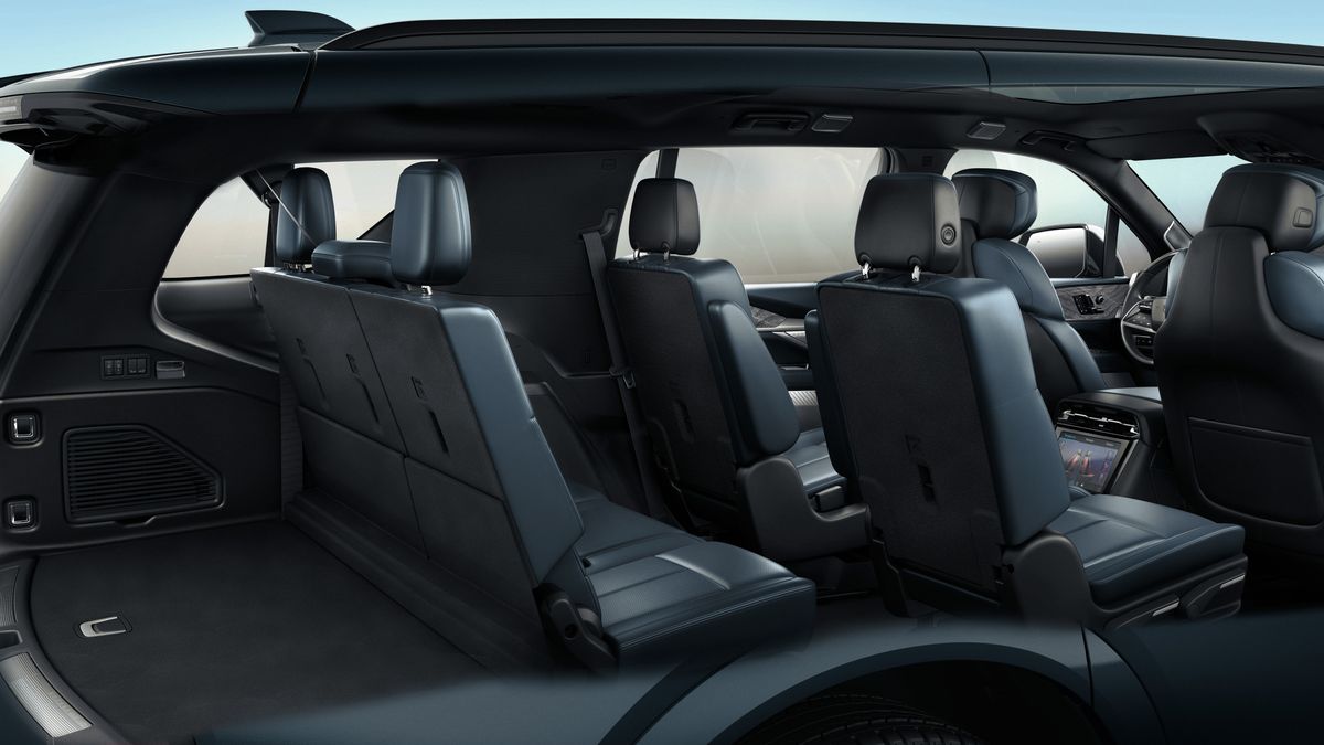 The ESCALADE IQL incorporates advanced technology for an improved in-cabin experience. It features a curved pillar-to-pillar 55-inch display for infotainment with voice control and navigation. The vehicle accommodates up to seven passengers with a power-folding third row that folds flat for more storage.