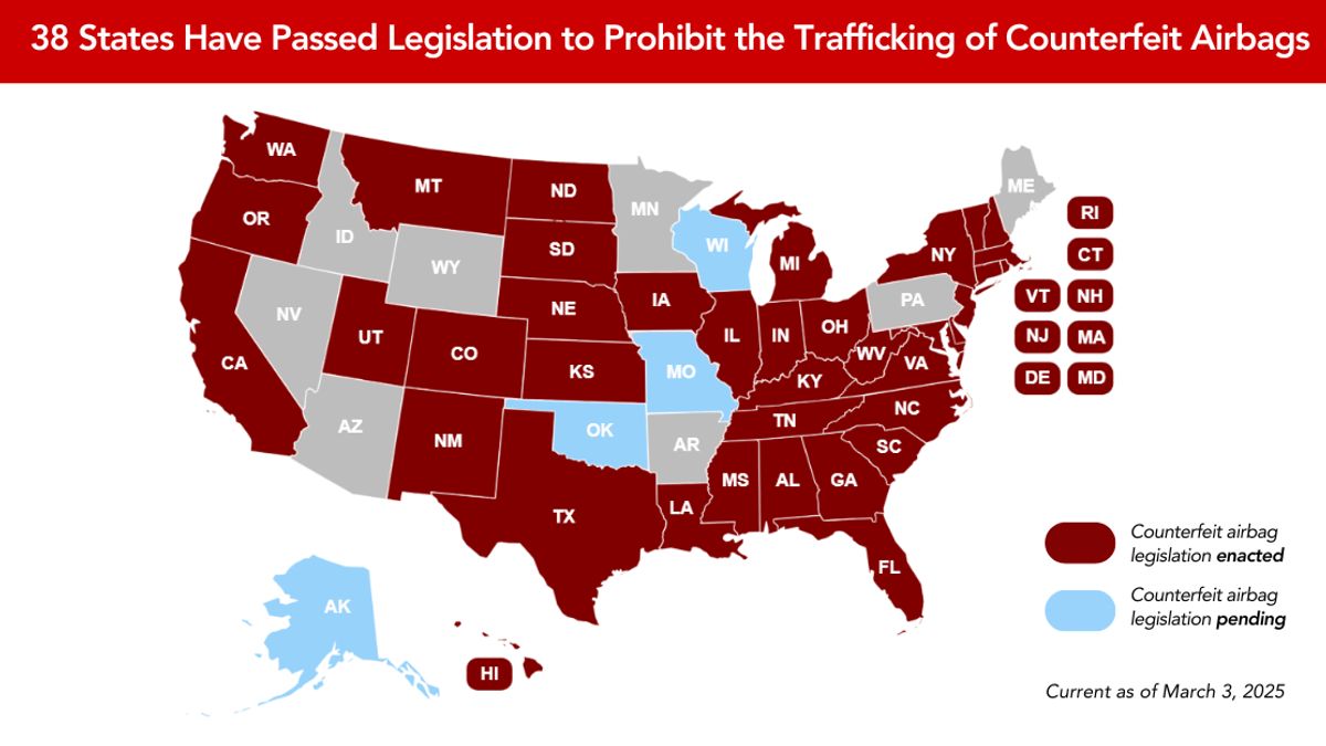 Honda's efforts have led to significant progress, with 38 states adopting legislation that prohibits trafficking fake airbags. However, there are still 12 states without such laws, and vehicles often cross state lines, highlighting the need for continued action. Expanding law enforcement's authority is crucial for preventing these dangerous products from reaching consumers.