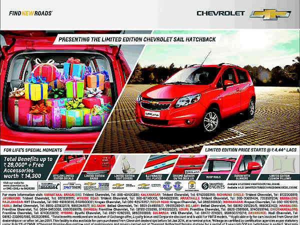 Also Read: Chevrolet Sail Sedan Limited Edition Launched