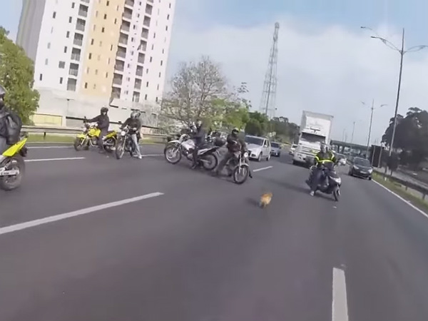 Video Of The Day: Bikers Stop Highway Traffic To Save Dog's Life!