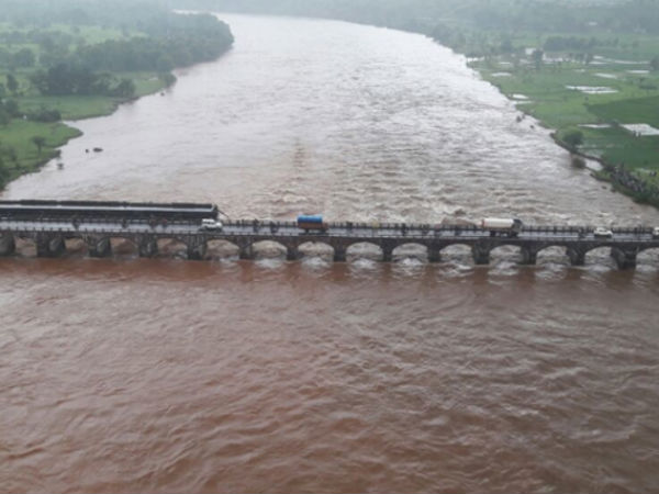 The Savitri river is presently flowing violently due to the rise in its water level and heavy rains in the area is said to be slowing down the rescue operations. Coast Guard helicopters are being deputed for spotting the possible survivors.