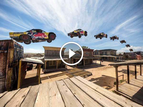 Menzie took a Pro2 off-road racing truck and jumped it a distance of 115.64 metres over a ghost town near San Diego in California. He broke the previous record set by drifter Tanner Foust by roughly 15 metres.