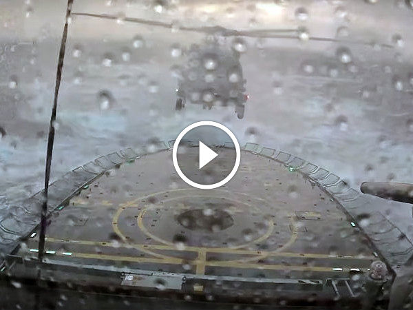 Flying and landing a helicopter is serious work that needs a crazy amount of skill. But when you have to land one as large as a MH-60R Sea Hawk on the landing pad of a ship, especially when said ship is pitching about wildly thanks to the mad weather, you need nerves of steel.