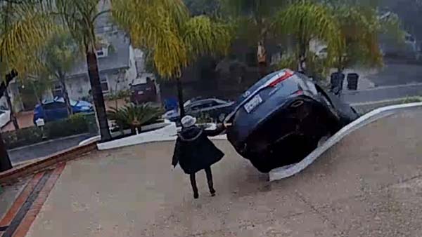 Like in this case, the Lexus ES was on the edge of a slope and once the driver got out with the car in drive mode, the lexus accelerated as usual. Though the sedan hit the edge of the driveway, it wasn't enough to hold it back as the slope was too steep.