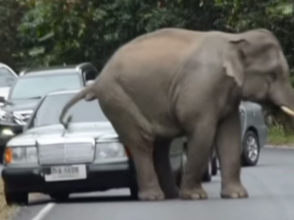 Video Of The Day: Elephant Tests The Strength Of Vehicles!