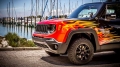 To help it deal with the rough stuff, Jeep has fitted the custom Renegade with a jacked-up suspension and BF-Goodrich tyres. The SUV has also been fitted with LED spotlights ahead of the two A-pillars.