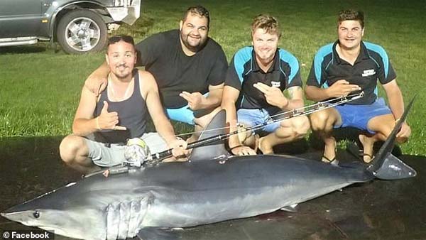 According to law in Australia, one is allowed to fish for Mako sharks, but only as long as it is one shark per fisherman. So, this wasn't exactly illegal, and neither were they parading their catch. The fishermen were quoted as saying, "We definitely weren't showing off. The shark was enormous and just physically too big to fit into the car door".