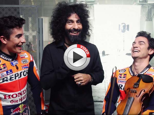 Ara Malikian is a Lebanese Violinist who showcases his speed on a Violin to Marquez and Pedrosa. The Repsol Honda duo also tries playing the Violin, however, you have to see it, to believe it how both of them play an instrument.