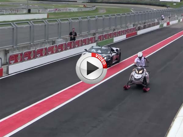 Today in our video of the day, we have a snowmobile beating not one, two Ferrari's. You need to see this video to believe that a Ferrari can be defeated in a drag race by a snowmobile.