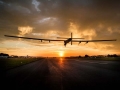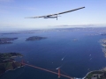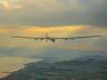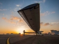 The Solar Impulse 2 completely uses the solar energy to drive its engine with a wingspan of 236 feet, which is slightly less than Airbus A380 - the current largest passenger aircraft. It cruises at an altitude of 39,000 feet.