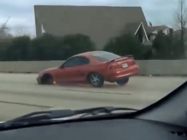 The driver of Mustang drives through the traffic on the highway without any issue. While we recommend getting your tyre changed on the side of the road, this guy was lucky the car doesn't cause any accidents with others.