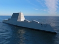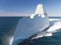 The Zumwalt is the first of three Zumwalt class destroyers. The name Zumwalt comes from the name of the late Admiral Elmo Russell "Bud" Zumwalt Jr. who was called ' the conscience of the United States Navy.' by former US President Bill Clinton when he delivered the Eulogy at Zumwalt's funeral in 2000.