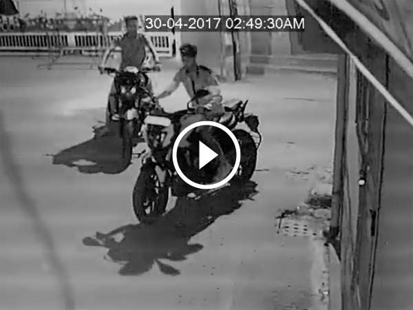 The entire theft is caught on CCTV camera. A team of four members were involved in this motorcycle theft. It seems like the thieves knew exactly where the motorcycle was parked.