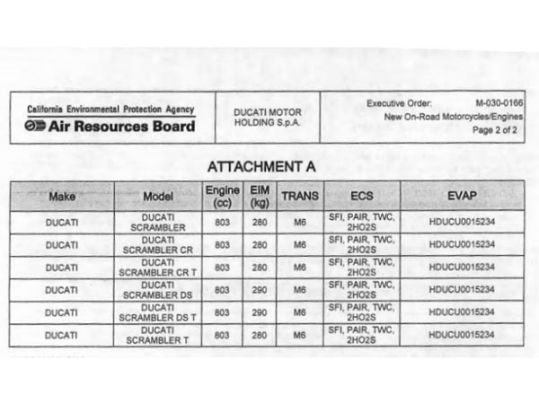 Italian motorcycle manufacturer Ducati has submitted six 2017 Scrambler models to the California Air Resources Board ( CARB) for approval. The line-up of these models will be unveiled by Ducati at the EICMA show in Milan.