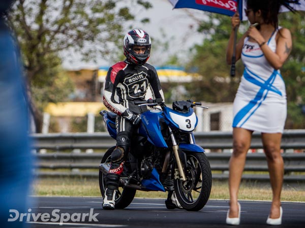 The race machines which were given to us had a free flow exhaust system, slightly tuned cams for better track performance and tuned carb. TVS also weeded out headlamps, taillamps, mirrors, indicators, etc, which are not useful for attacking the race track.