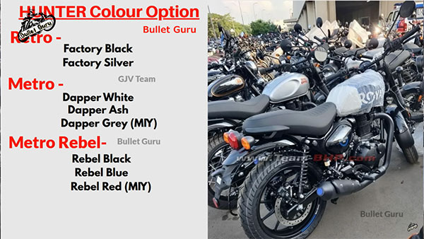 The leaked details also reveal the upcoming Royal Enfield Hunter 350 will be available in 8 colour options as well. Also, the leaked details reveal that the three variants of the upcoming Royal Enfield Hunter 350 motorcycles are named Retro, Metro, and Metro Rebel.
